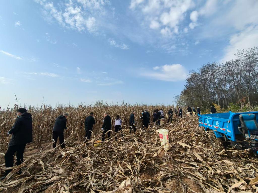 党员干部们卷起袖子,俯下身子,掰玉米、剥皮、搬运、装车,大家齐心协力,动作麻利,年轻的党员冲锋在前,比速度、比干劲,年长的党员经验丰富,做示范、传技巧。经过一上午,田里的玉米被收得干干净净。
