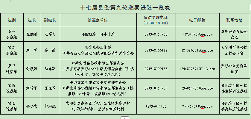 附:十七届县委第九轮巡察进驻一览表
